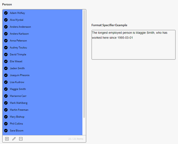 | {rowindex} | Representing current index when evaluating Initial Filter and Initial Selection expressions. Zero based. |