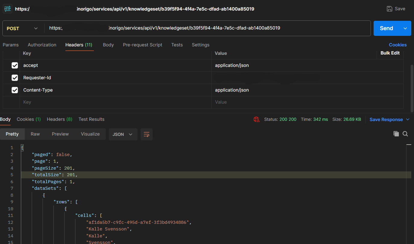 - If you want to execute the API request in another API client, you can copy the request URL and paste it into the client of your choice. This will allow you to access and execute the same knowledge sets using that client.