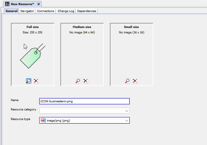 Another way of adding a new Resource is to drag the source file into the Full Size area in Model Builder. The Resource Type will be detected automatically and a Name suggestion will also be provided as illustrated below: