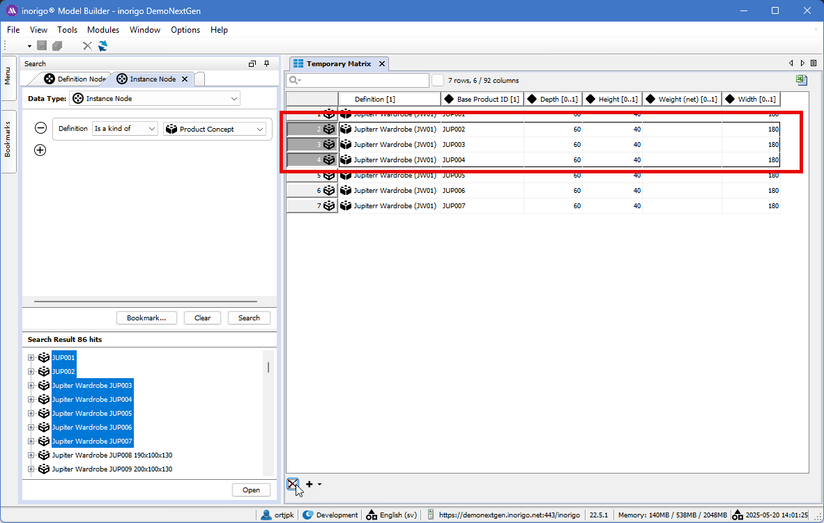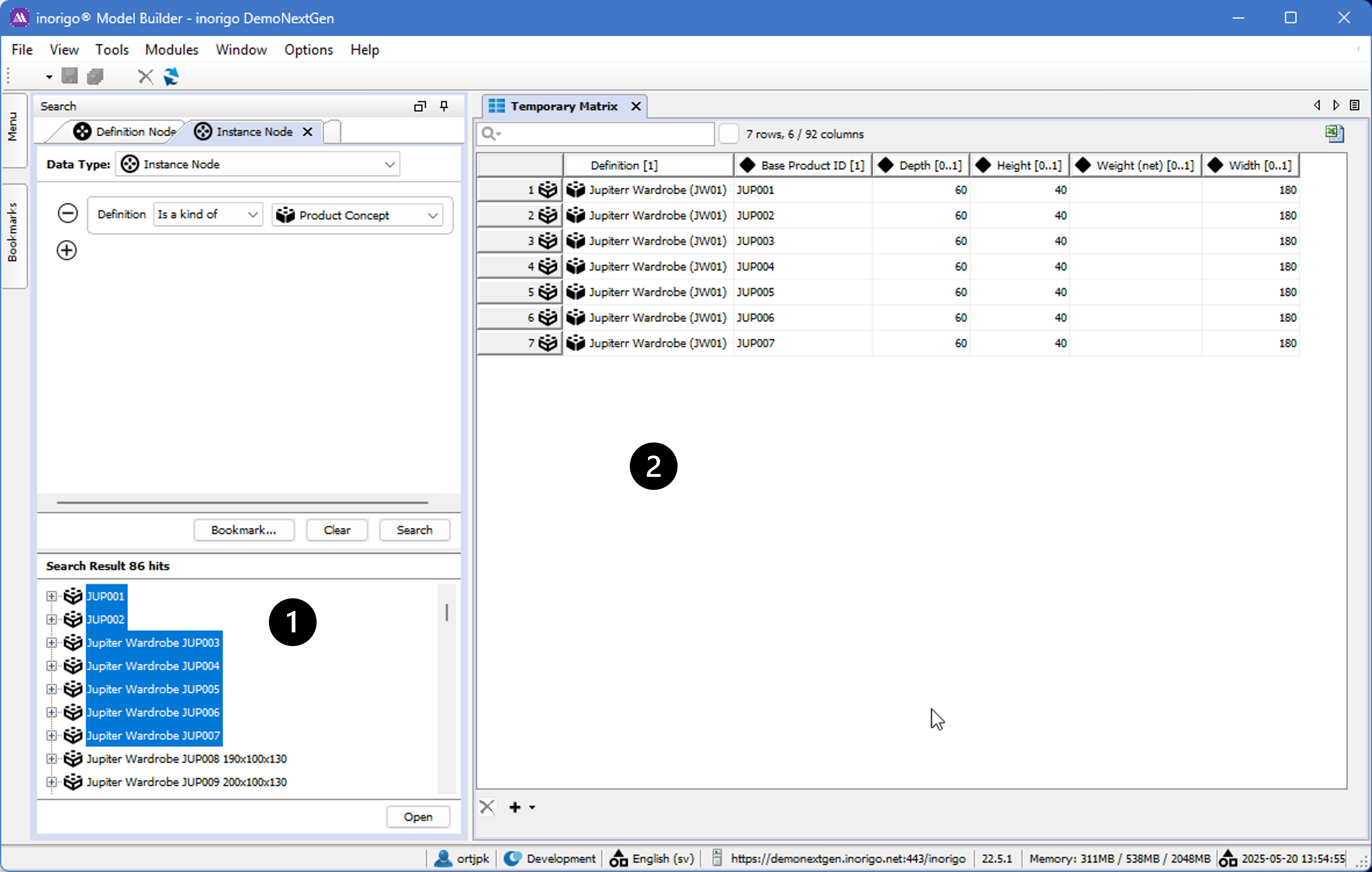In inorigo® Model Builder it is possible for multiple users to be logged in and work simultaneously with the same or connected sets of data. This becomes even more important when it comes to working with data through the matrix. Whenever any changes has been made from outside to the data you are currently working with, the matrix will automatically update the concerned cells and rows.