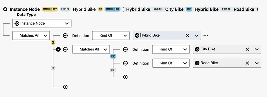 Each operator serves a specific purpose—for example, Equals checks for an exact match, while Kind Of includes results that belong to a classification.