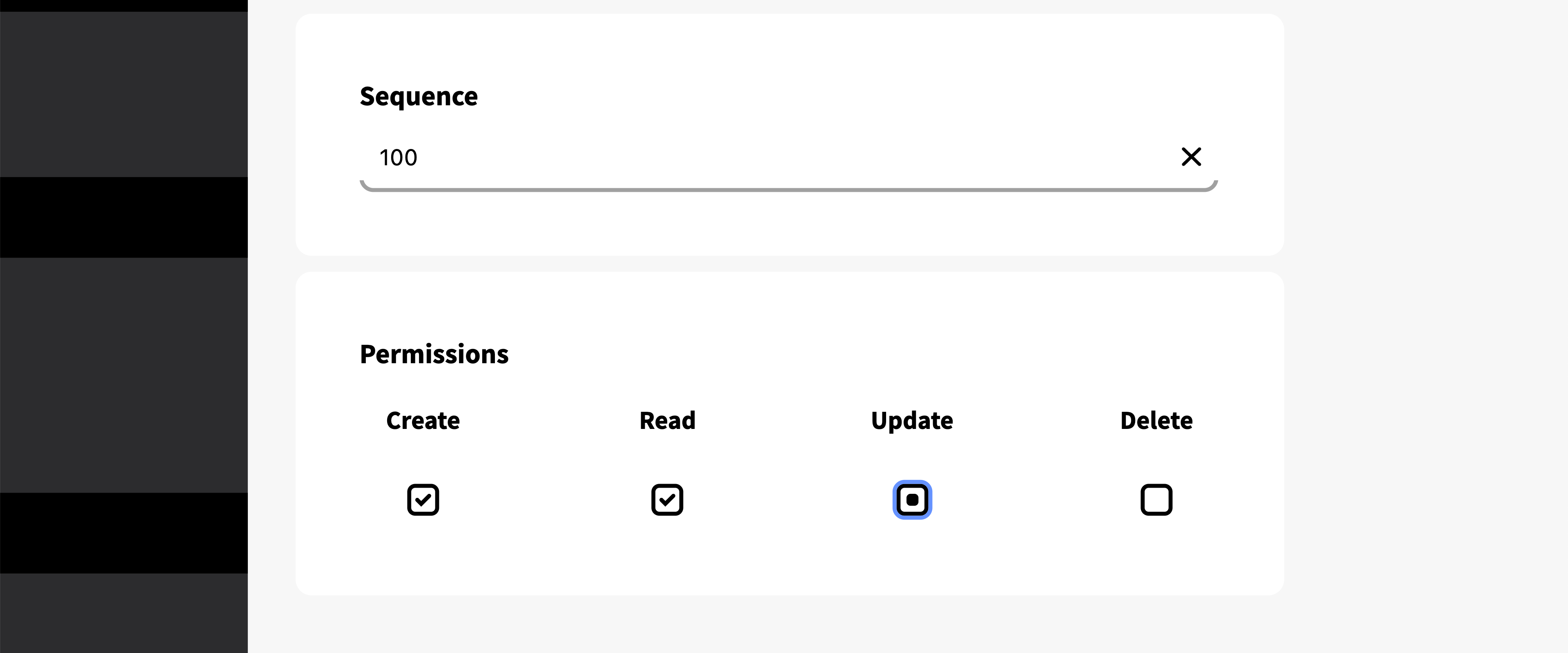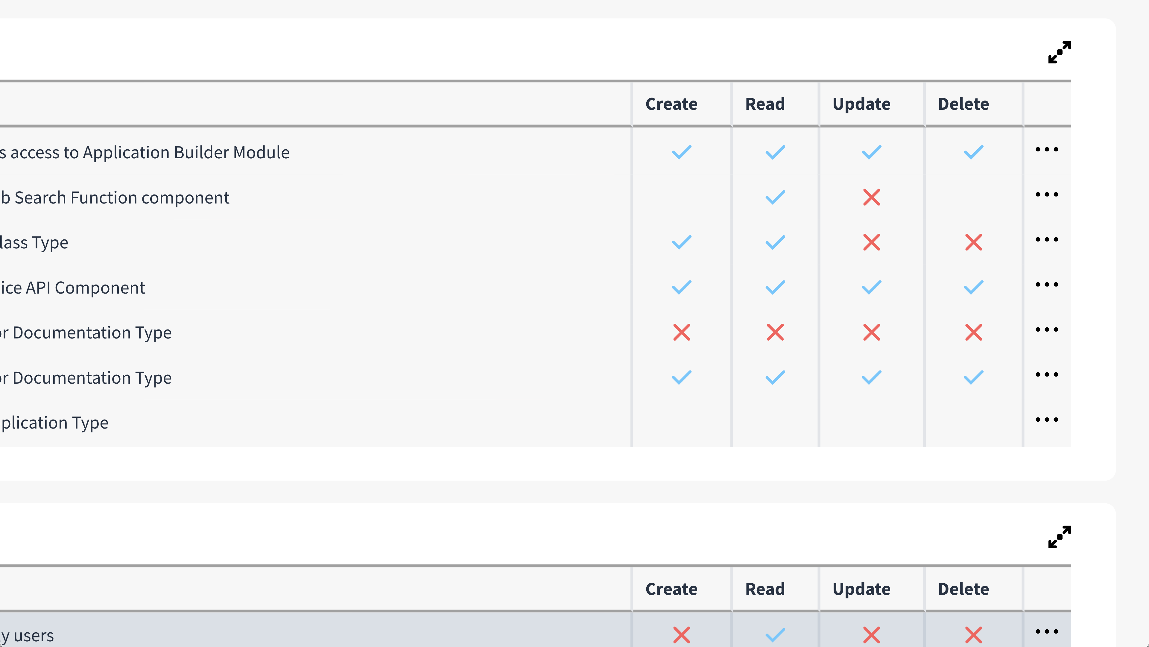 When managing CRUD (Create, Read, Update, Delete) permissions, you can assign each permission one of three states: