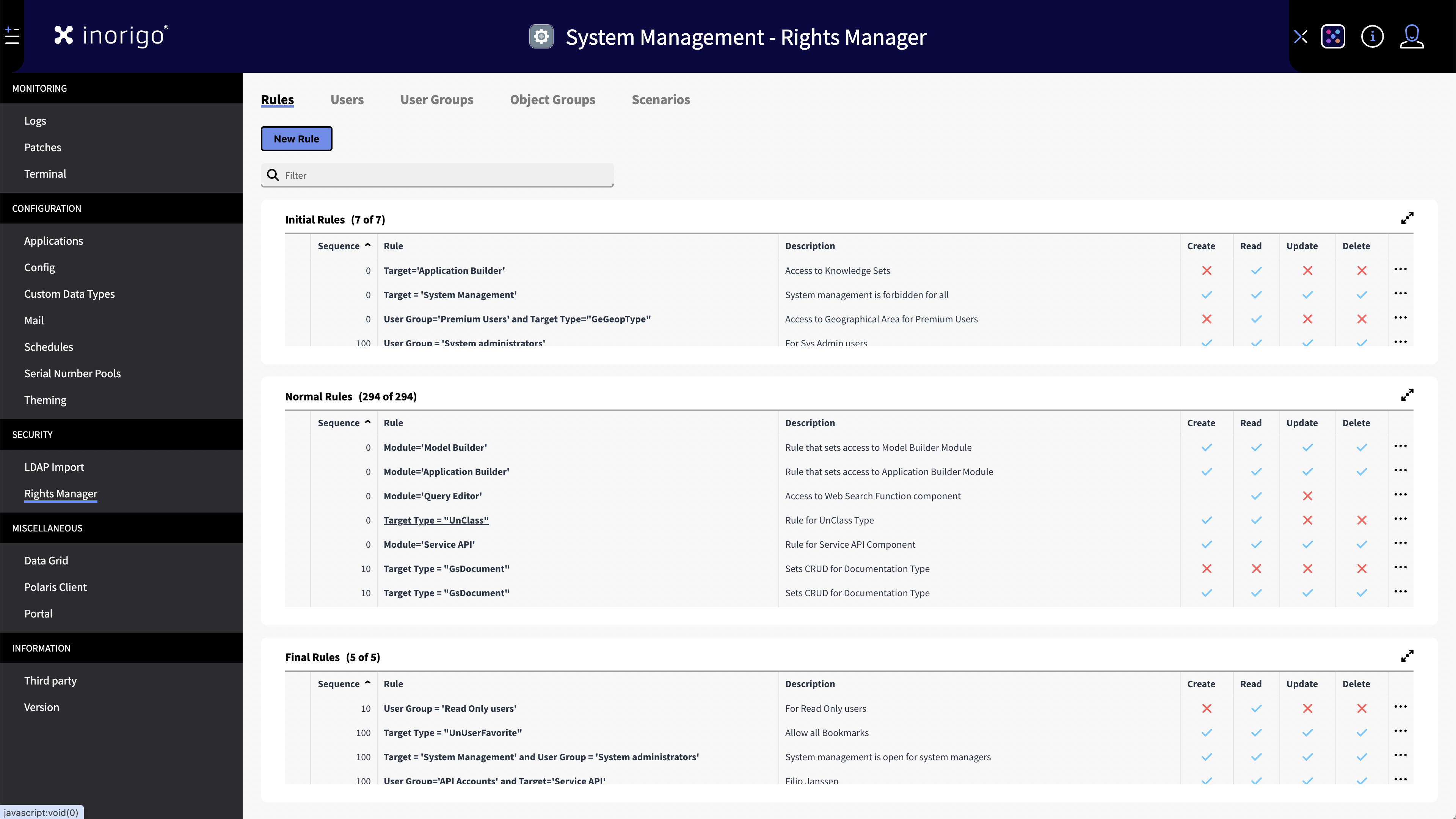 Note: System Administrators always has full access to all inorigo® modules, regardless of rules, user groups and permissions.