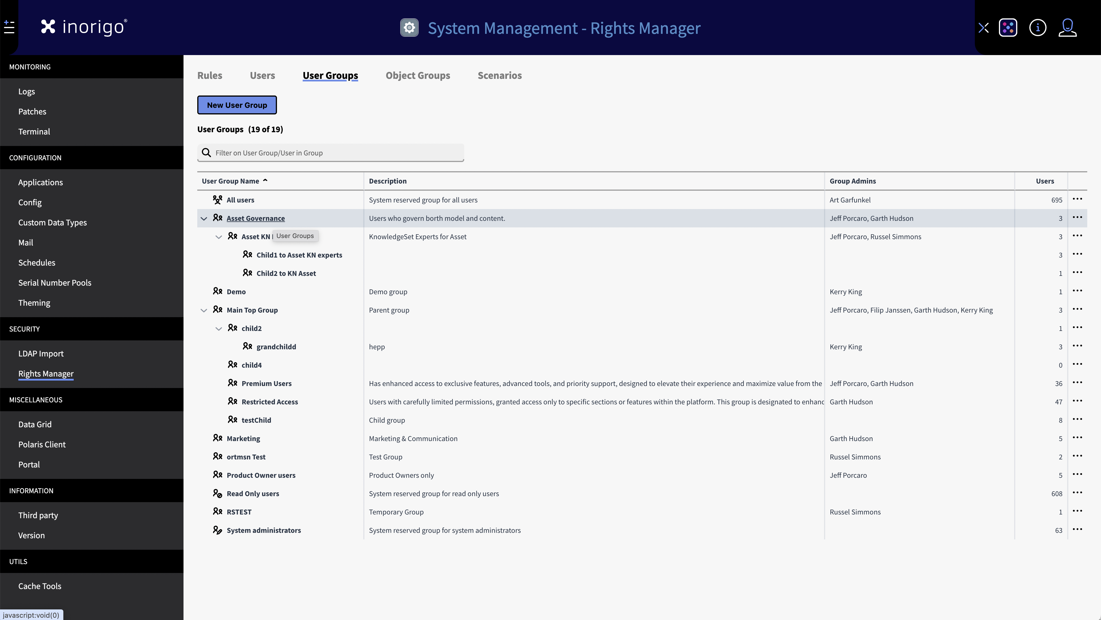 The Rights Manager enables flexible rights management across multiple levels within the inorigo® platform. It works in conjunction with the Access Manager to ensure secure and controlled access.