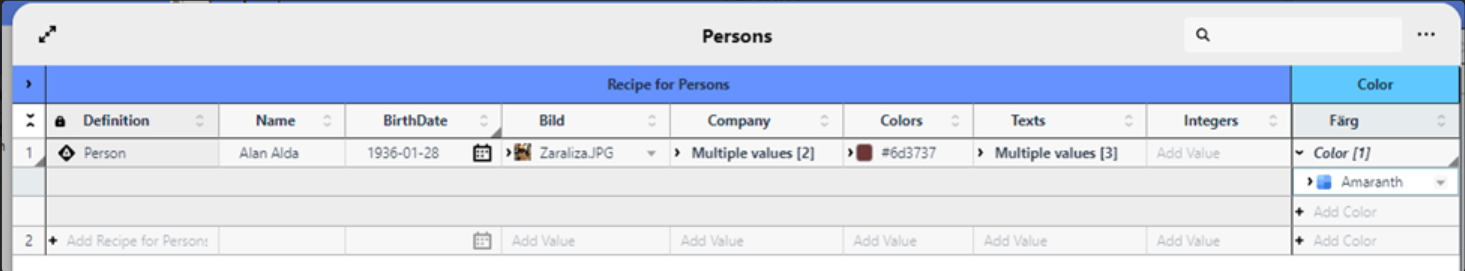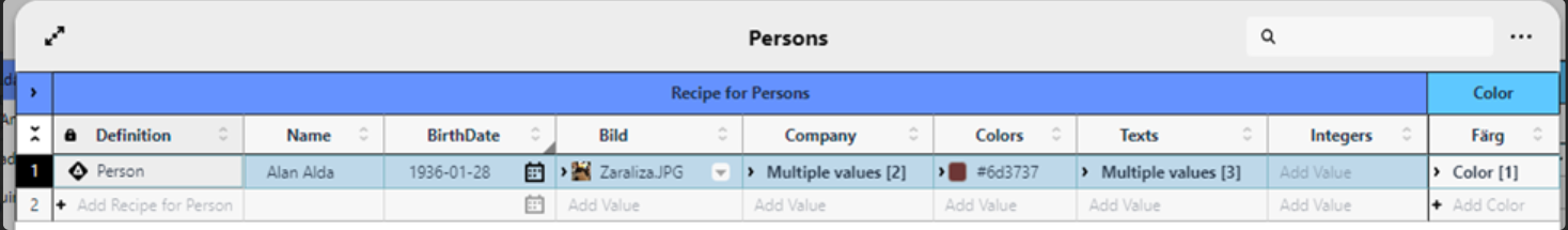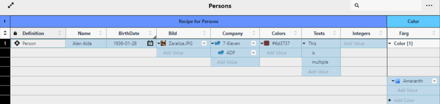 If a value of a multiple attribute cell only contains one value it is displayed in the cell.