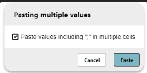 A confirmation dialog is displayed if the selected cell to be pasted in is multiple attribute values.