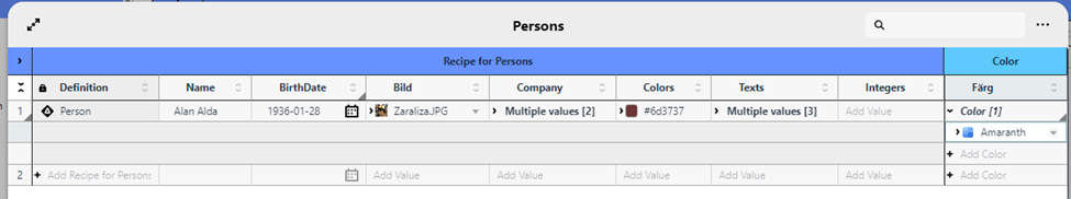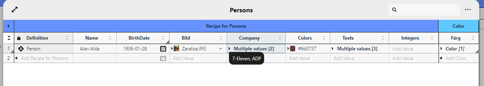 If a value of a multiple attribute cell only contains one value it is displayed in the cell.