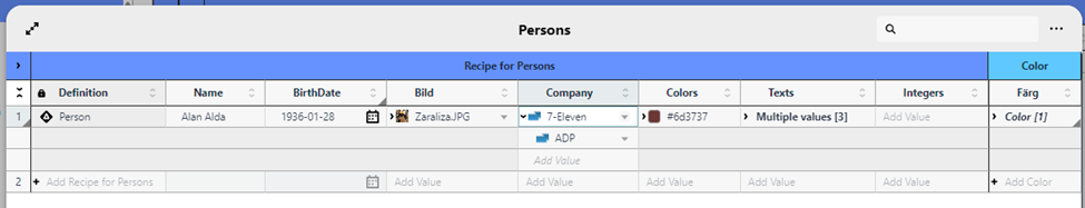 The values can be expanded by selecting the arrow in the cell and a new value can be added in the “Add Value ” cell.
