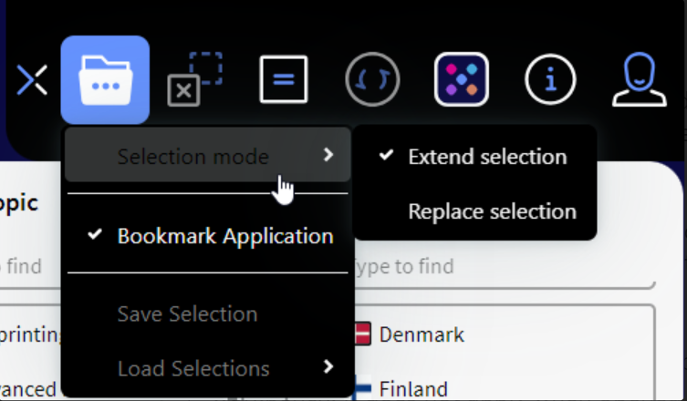 A new menu (Selection mode) has been added under the "File" menu for application in Workbench. This menu can be used to override the default selection mode.