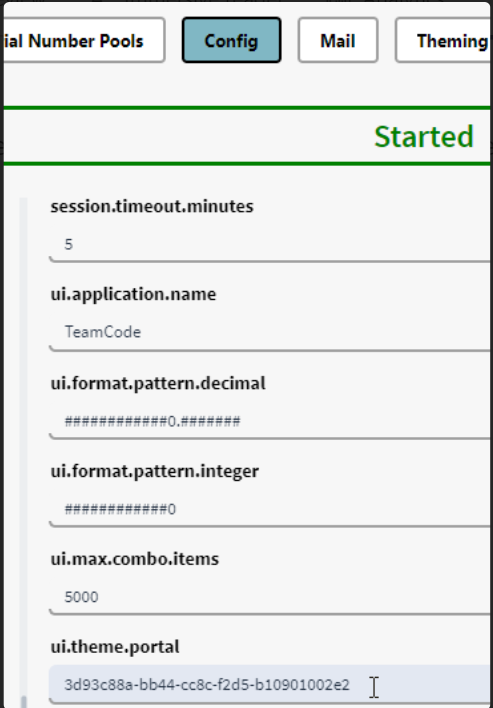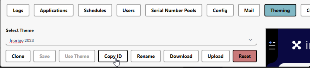 Open Config and select the ui.theme.name and paste the ID (CTRL+V) Don't forget to save the Configuration.