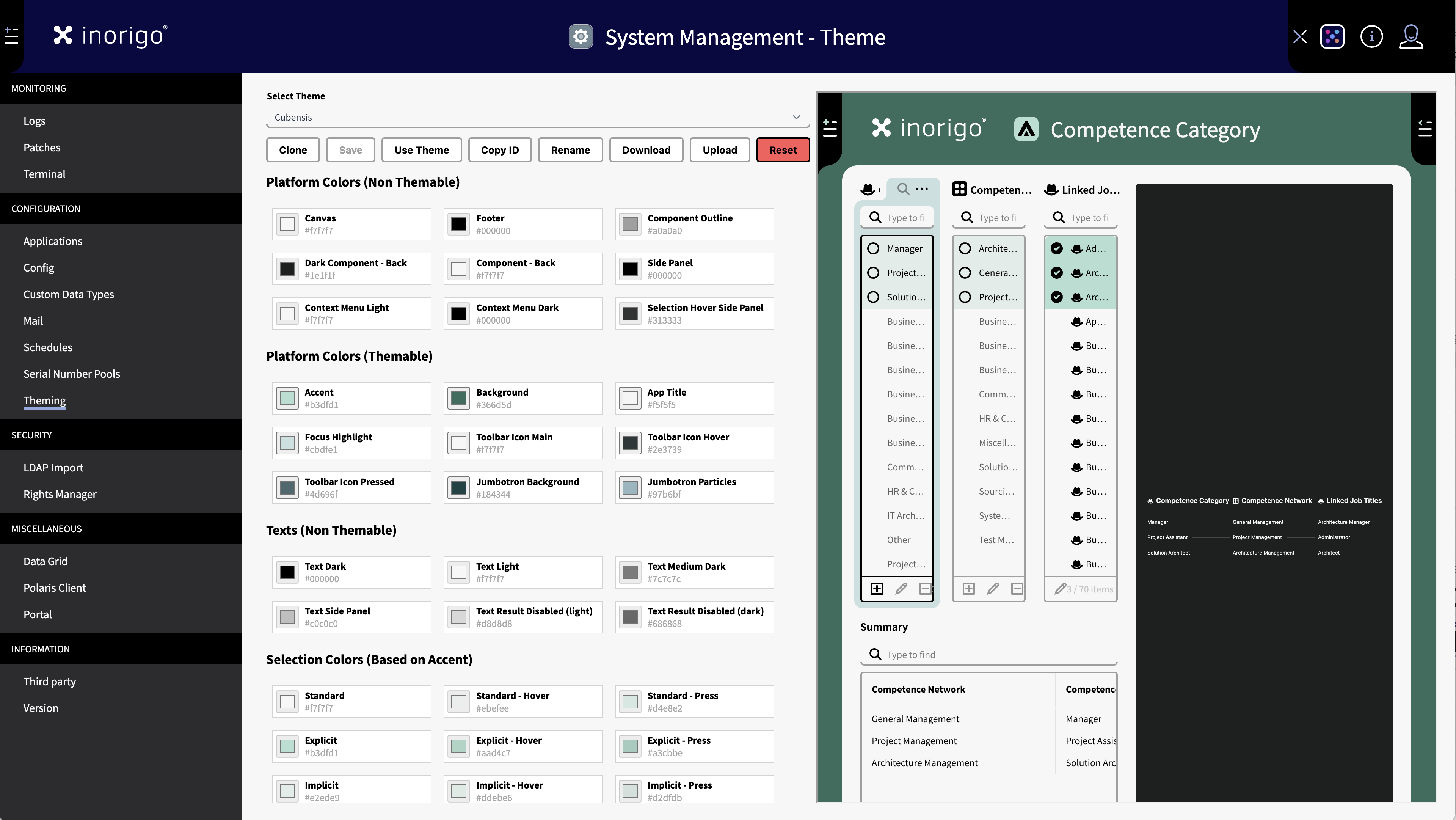 Theming makes it possible to adapt the look of inorigo® applications, workbench and the portal to a customer’s brand by changing visual aspects like colors and logotype.